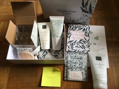 Box neuve avec tous les produits inutilisés, un range make up, un gel douche et une creme corps Rituals, un gel lavant My little box, un disque démaquillant visage, un pédicurista, le pochon, J'aimerais l'échanger contre une autre my little box complète antérieure à novembre 2016, ou ensemble de produits de la même valeur pour cheveux (shampooing, soins, shampooing sec)