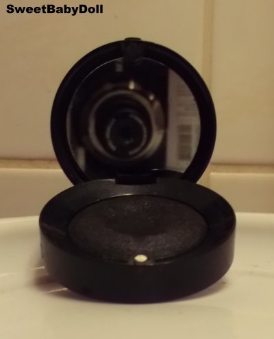 Ombre à paupières de Bourjois. Couleur : 06, Noir à pailletes. Légèrement creusé, reste beaucoup de produit. ( L'écriture sur le dessus s'est effacé )