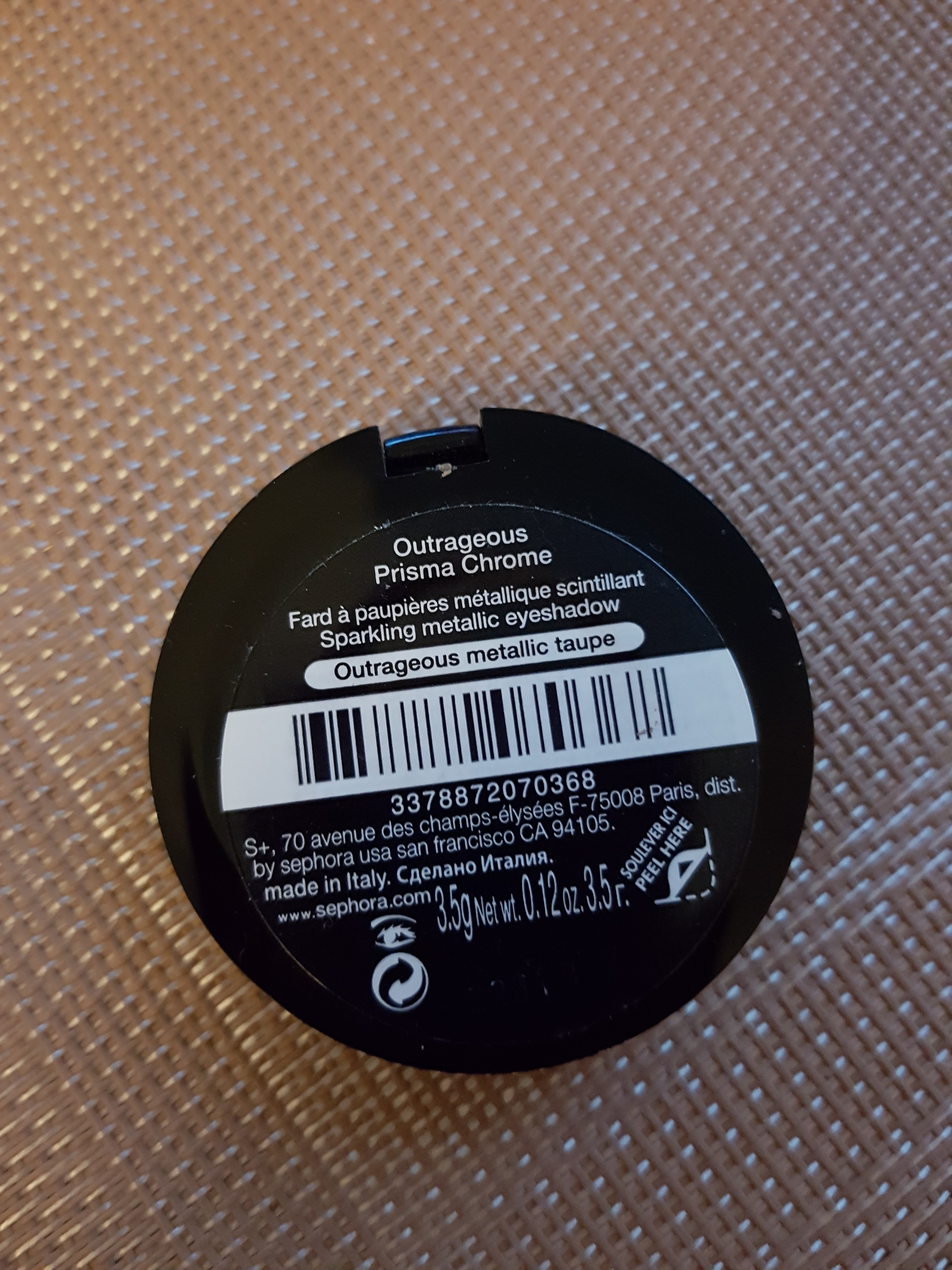 joli fard à paupière outrageous prisma chroe, teinte taupe fard à paupière métallique scintillant testé au pinceau