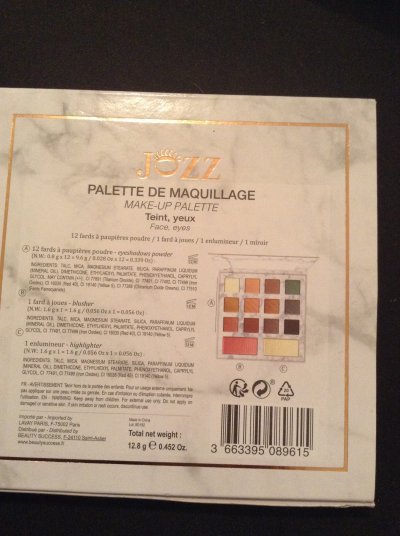 12 fards paupière . 1 miroir, 1 fard à joues et un enlumineur