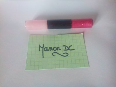 Duo de gloss eu dans un coffret de chez Yves Rocher, la contenance n'est pas précisée, je dirais 3ml pour chaque couleur (rose fushia et rose pale) Avec des paillettes