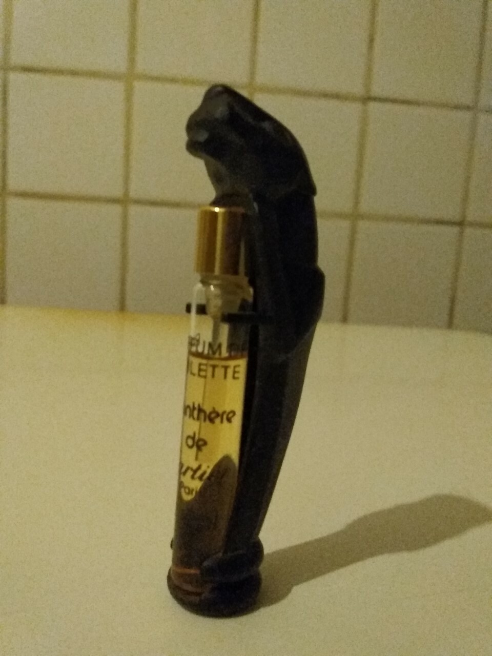 Echantillon en verre recouvert d'une panthère en plastique noire contenance : 1 ml