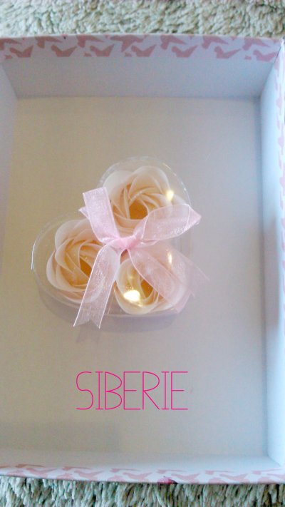 Savon d'invités à la rose bio, en forme de rose (la rose est en matière très fine comme du papier, je pense que chaque fleur peut servir une fois...) Il y a 3 roses emballées avec un ruban. Neuf, jamais ouvert