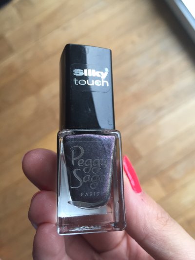 Touché velouté. Gris charbon avec de pailettes tous fins argentés et rouges.